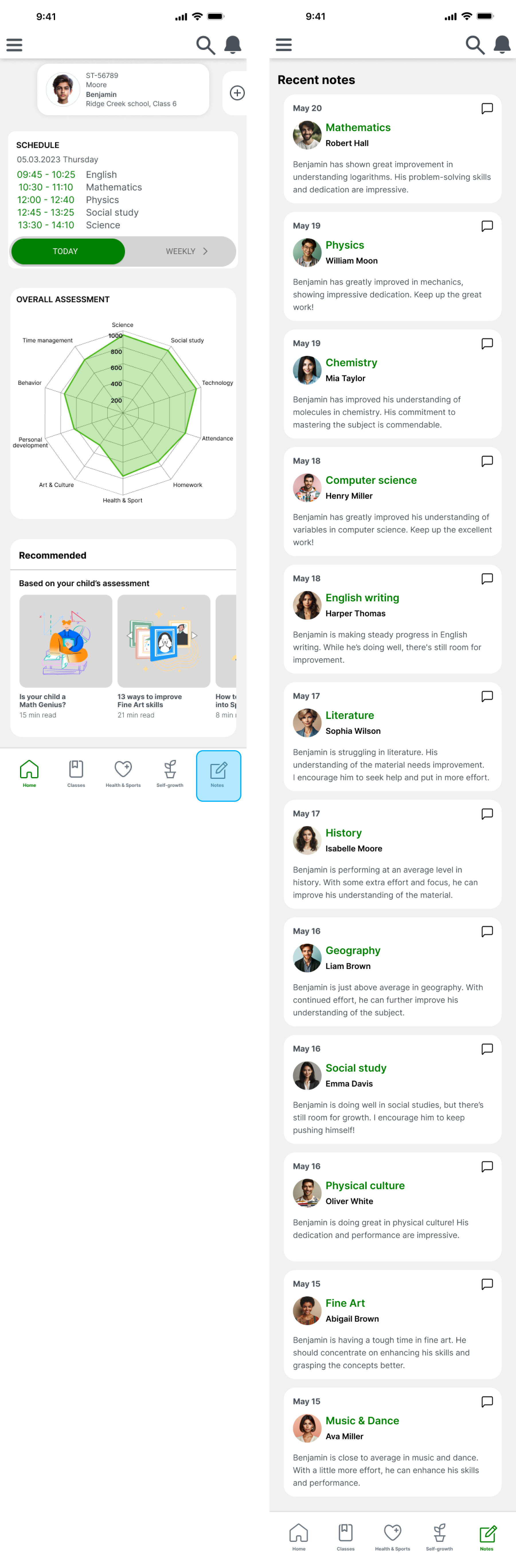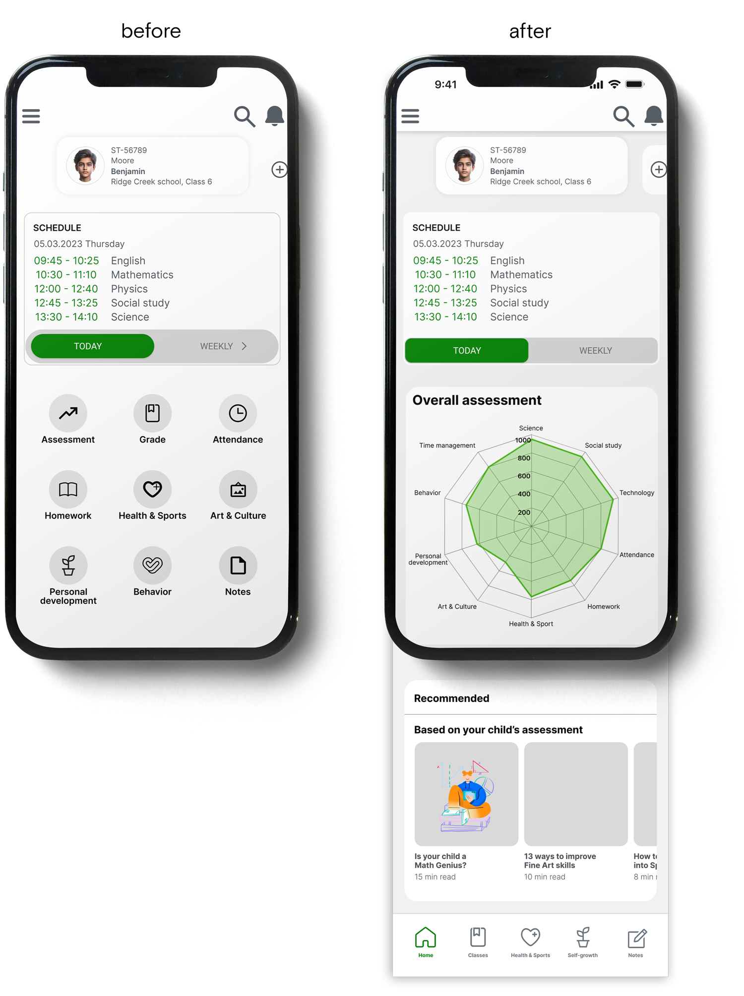 Amp up the good - Most schools and teachers already have an incredibly good reporting system when it comes to grade and academic knowledge assessment. So we used the old system as a fundamental basis for the new one and just simplified its forms for parents to make it easier to understand with a quick glance.